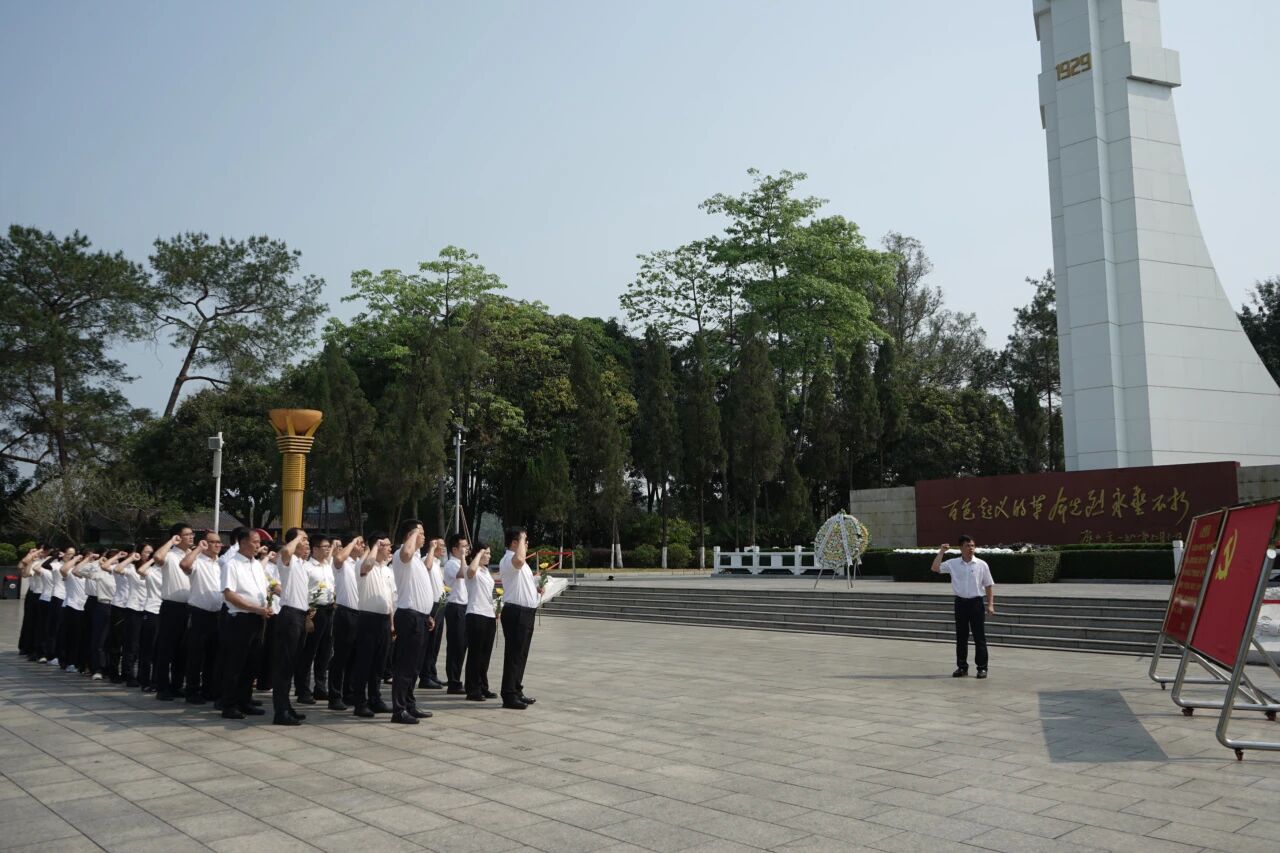 随后全体人员有序步行至百色起义革命烈士纪念碑广场,以庄严的仪式缅怀革命先烈,领导代表与党员、预备党员等依次敬献敬意,在纪念碑前追忆峥嵘岁月,感悟革命先烈为民族解放、人民幸福抛头颅洒热血的崇高情怀。