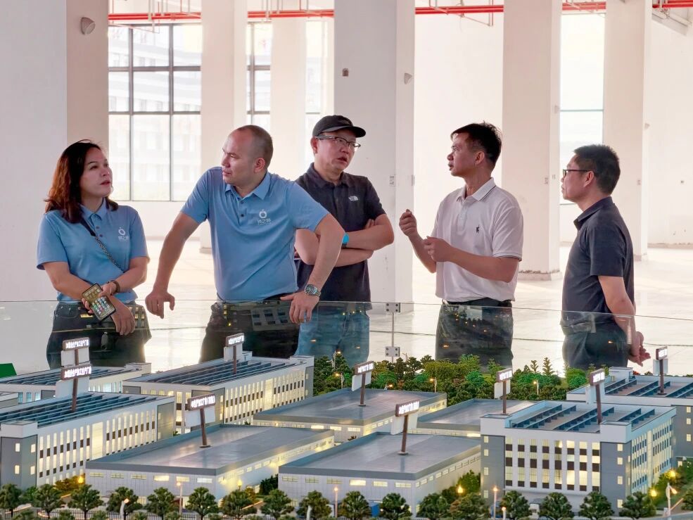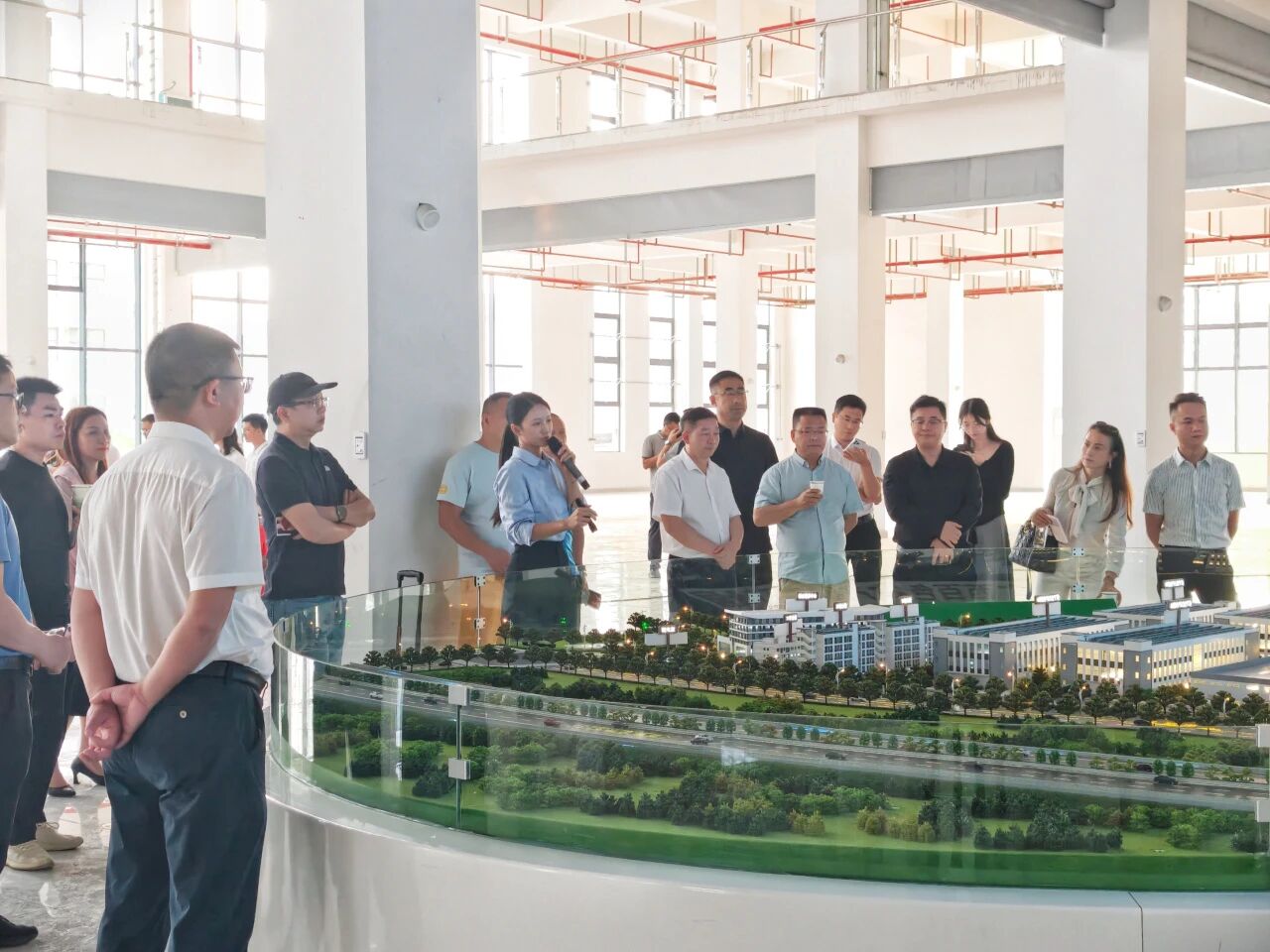 在现场观摩活动中,集团公司工作人员围绕产业园全景沙盘,向参会客商全面讲解园区的规划布局、建设进度、功能分区与配套优势,清晰呈现集生产加工、仓储物流、研发办公、综合服务于一体的现代化产业集群蓝图。客商们驻足沙盘前,深入交流园区发展规划,对产业园的建设成果与发展前景给予高度认可。